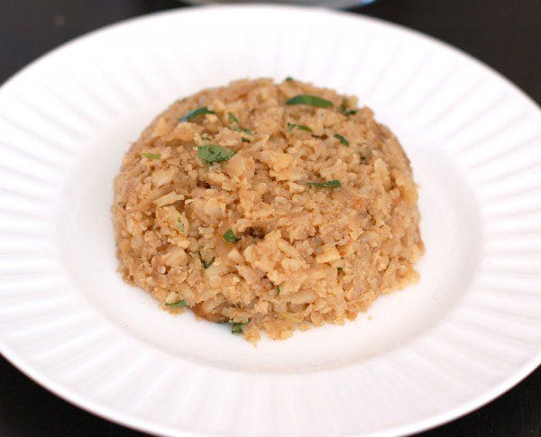 Besides it’s versatility [cauliflower usually takes on the flavor of what you’re cooking it with very well], high-fiber content, and low price, there’s one BIG reason why I love cooking with cauliflower: It’s kid-friendly!