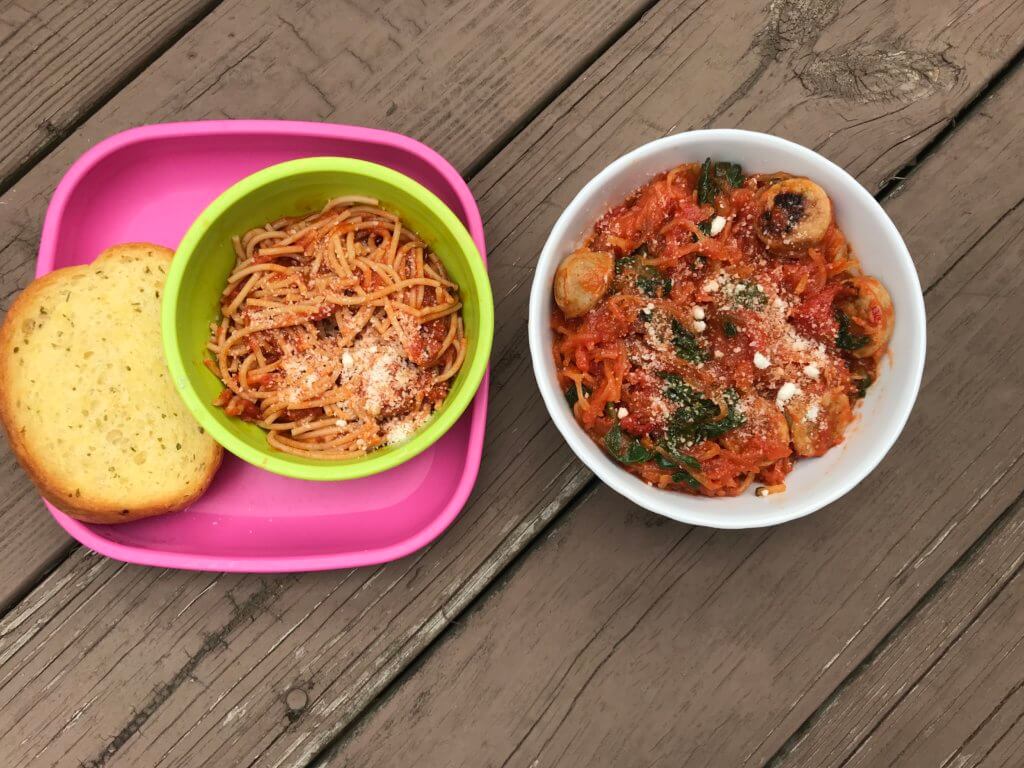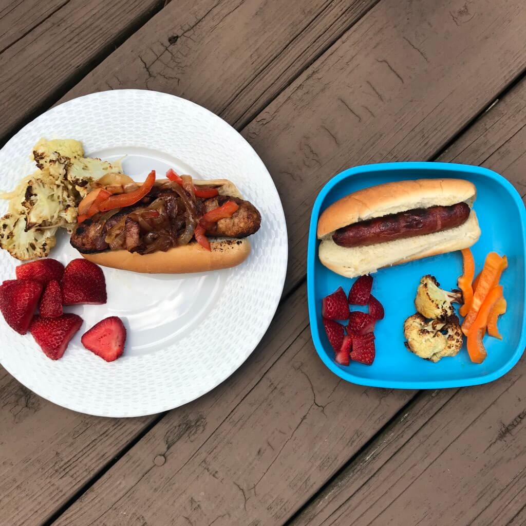 - You don’t see much fruit pictured, mainly because when I’m making dinner I tend to set out apple slices, watermelon cubes, grapes, bananas, etc. to distract the troops. Sometimes I’ll put out cucumbers or pepper slices and count that as their veggie serving BEFORE dinner.