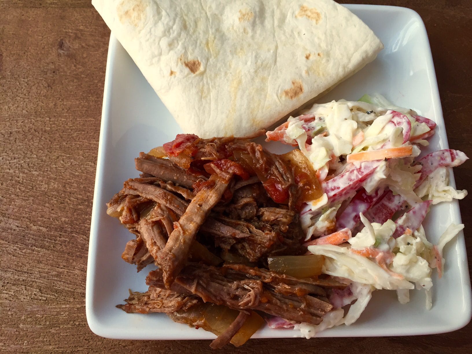 - My favorite way: shredded beef tacos, served with a crunchy coleslaw topping.