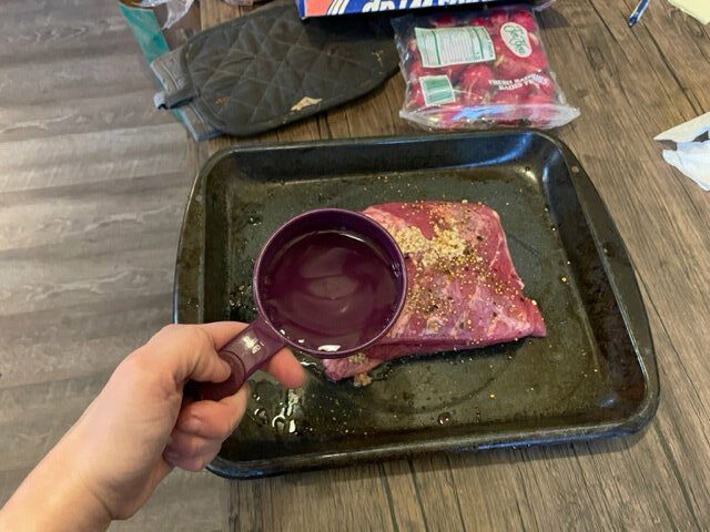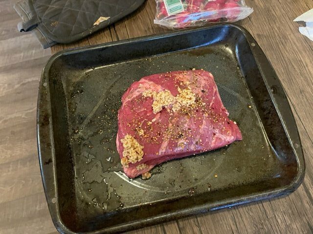 This was the first cooking method I tried. Again, I followed this recipe [images below]. I placed the roast in a roasting pan with the seasoning packet in the packaging, additional seasoning from the recipe instructions, 2 cups of water, and covered tightly with aluminum foil. I then heated the oven to 350 degrees and cook for 3 hours or until fork tender. *Always reference the package for specific cooking instructions- as my cooking instructions were for a 3 pound corned beef brisket.