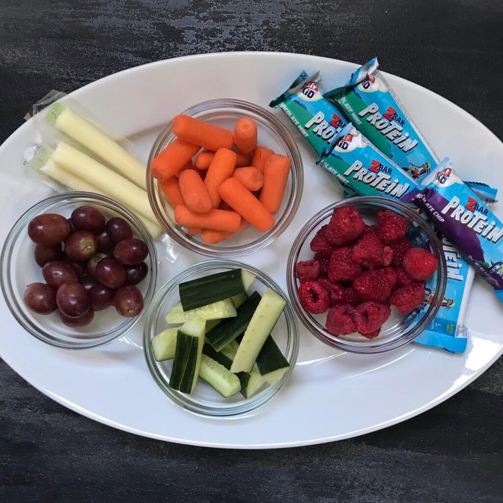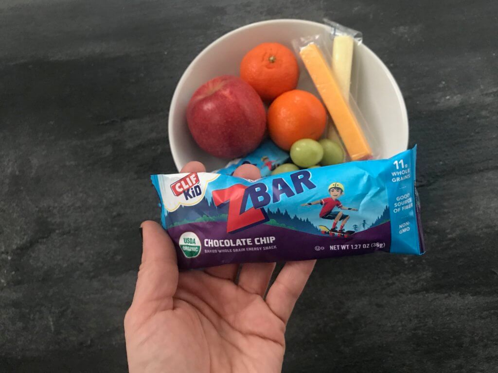 This could be deli meat or sunflower seed butter in a sandwich or other main course and another hunger-busting snack such as a hard-boiled egg, CLIF Kid Zbar® Protein or hummus.