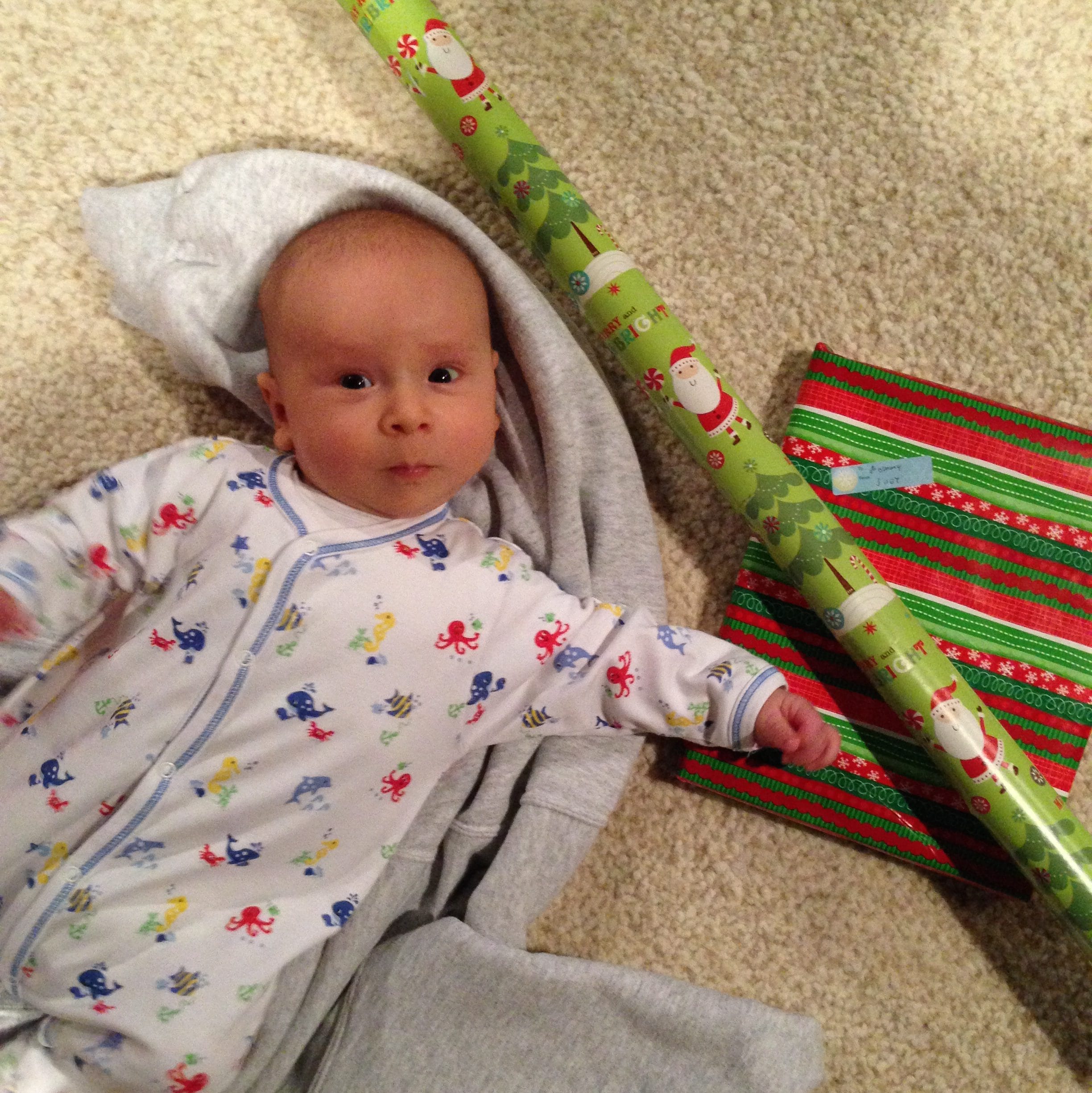 Most people ask me if having a Christmas baby makes the holiday season more frantic. I’ll admit that it was one of my worries 40 some odd weeks ago. In the end, our family has learned that having a Christmas baby is nothing to be worried about—it just makes the most wonderful time of the year that much more wonderful. Our Christmas baby will have an unforgettable birthday just like Joey, Ted, myself, etc. I’ve done my best to remain positive about his treasured birthdate and hopefully he will grow up reaping the rewards of being a special Christmas baby.