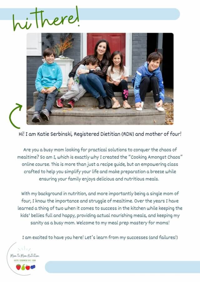 It’s as simple as sending me an email: [email protected] to get started. And hey, if it’s not in your budget for some personalized meal plans, don’t fret! More to come from Cooking Amongst Chaos both on the blog and social!