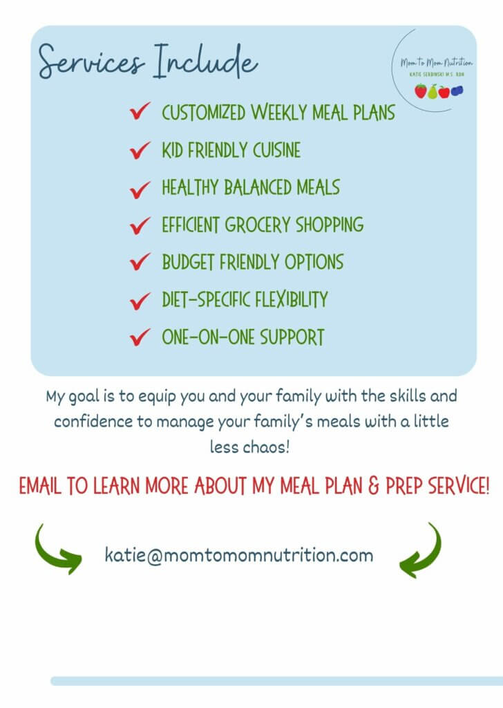 I recently had a friend ask me to customize some meal plans for her and her husband- and it got me thinking. I’m available to do this for YOU, your family, your neighbor, you name it! Guess what? I’ll even prep some produce or meals for ya, if you’re in the Metro Detroit area 🙂 Drumroll please….