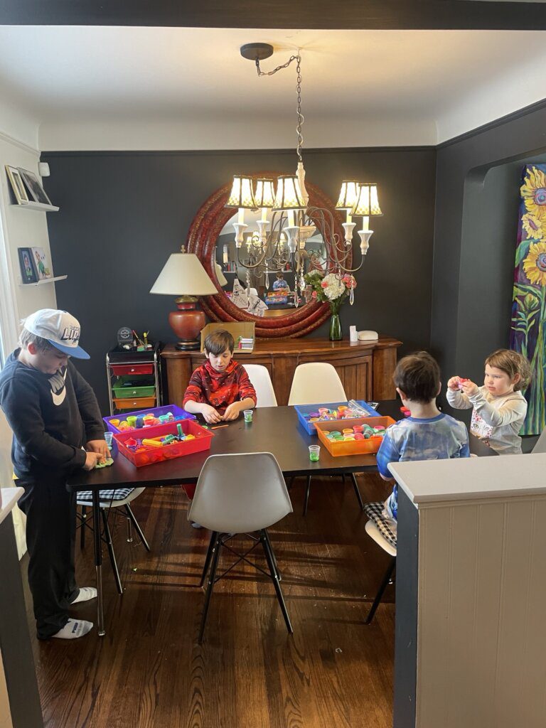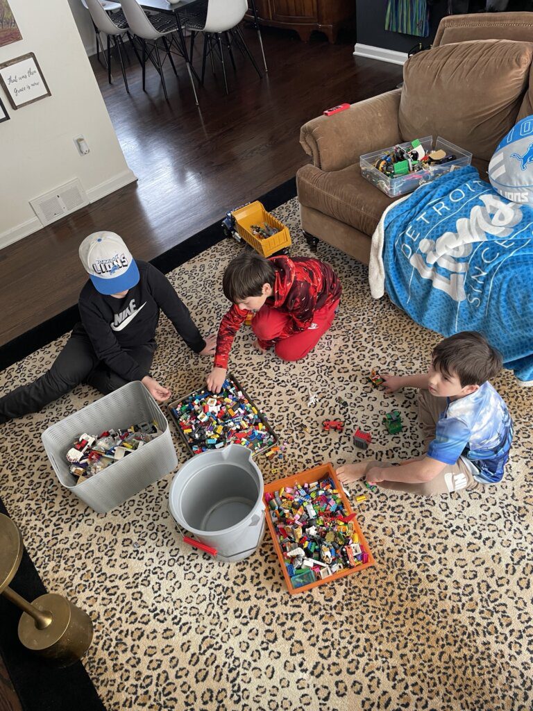 And guess what? I was able to tidy up at the end of the night. Well, at the end of snow day 1. Snow day 2 was spent mainly at Nana and Goomba’s house… and ended with a visit from the 3 dudes around the block!