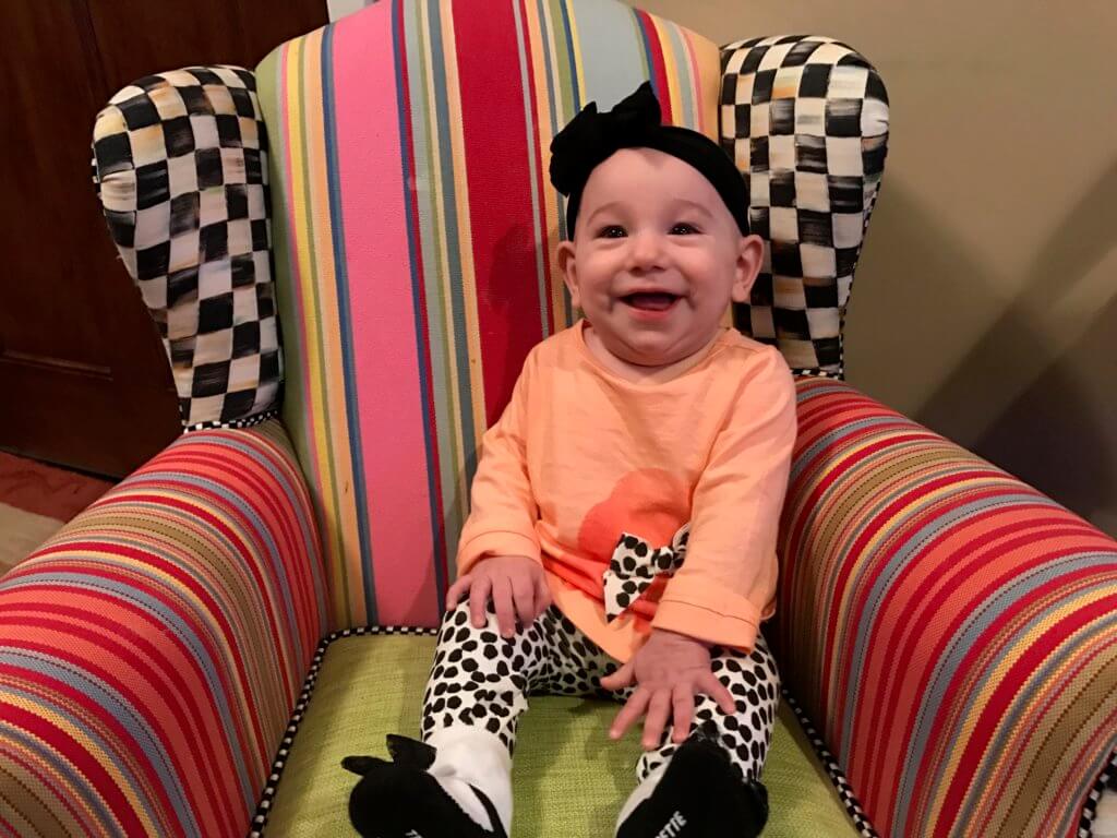 - Her smile lights up a room, especially when big brother Anthony comes to play with her [which is him sitting on her back].