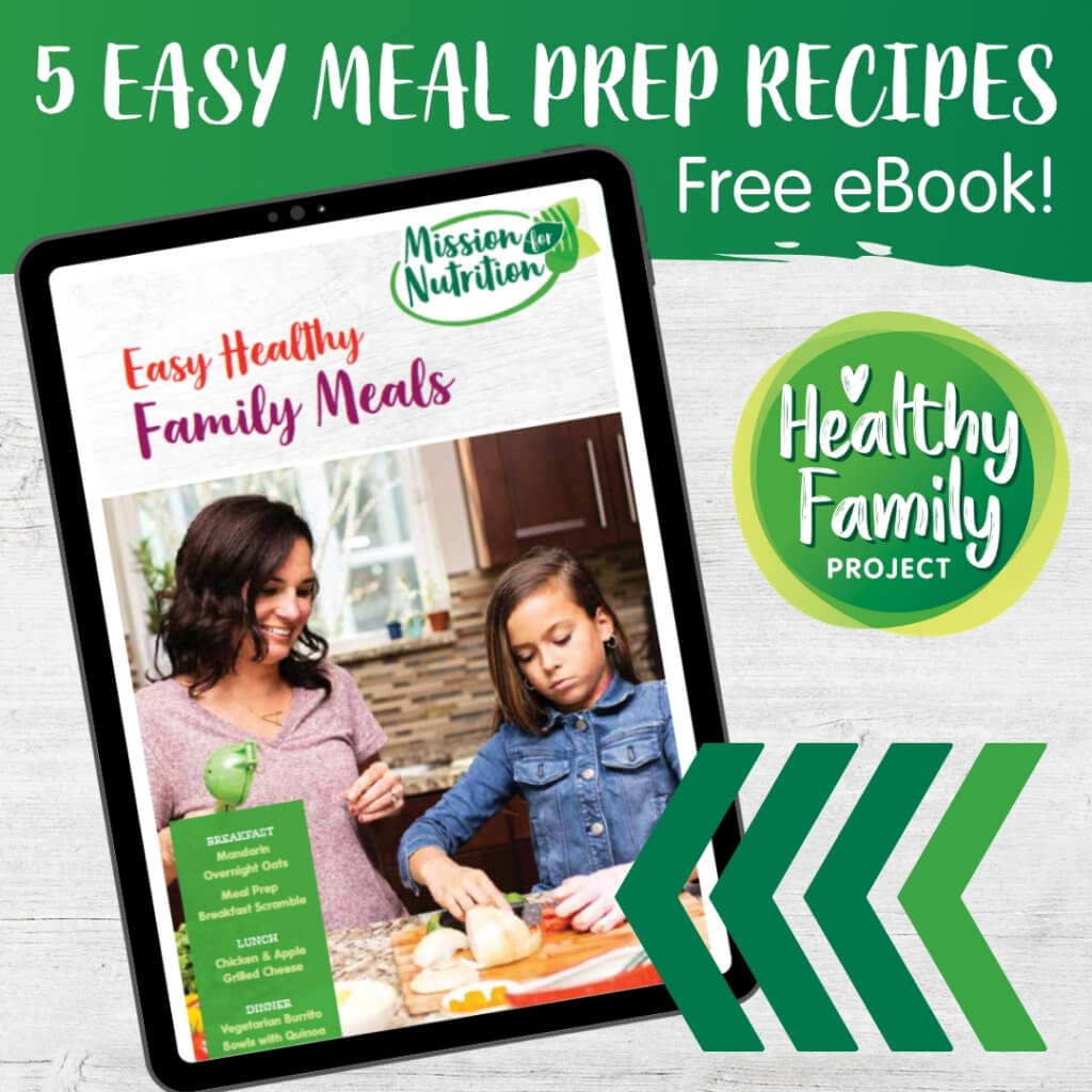 Meal planning helps you save time, money and extra trips to the grocery store. It also helps you stick to your food budget and helps you buy only what you need for the week. What I love about Healthy Family Project’s Mission for Nutrition is that they too agree, the healthiest meals start with a plan in mind. It’s all about Meal planning made easy. Mission for Nutrition materials like their free meal plan e-cookbook, complete with 5 easy meal prep recipes and a shopping list, helps save time AND money in the kitchen. Who wouldn’t want that?!